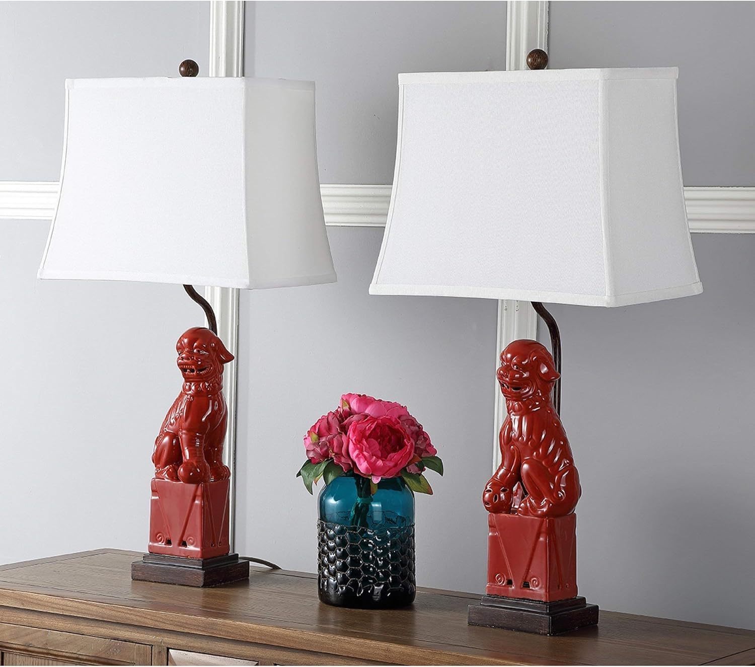 Amazon Com Misc Set Of 2 Red Foo Dog Lamp Lion Ancient Fu Dogs