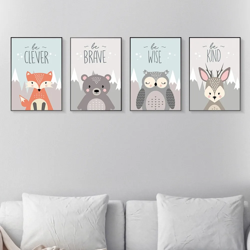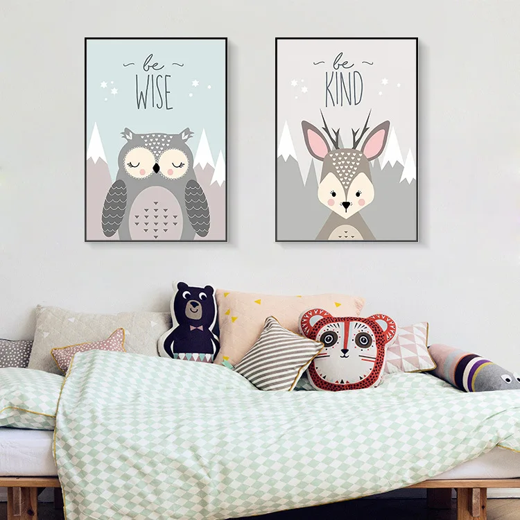 Baby Kids Room Decor Animals Fox Bear Owl Deer Canvas Painting