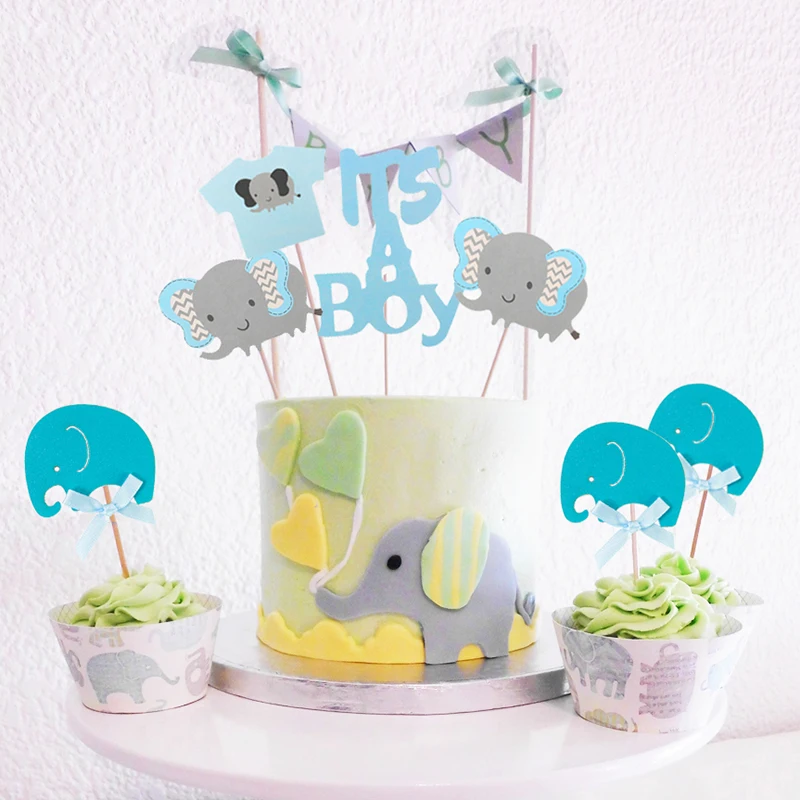 Baby Shower Decorations Elephant Paper Cake Toppers Its A Girl Boy