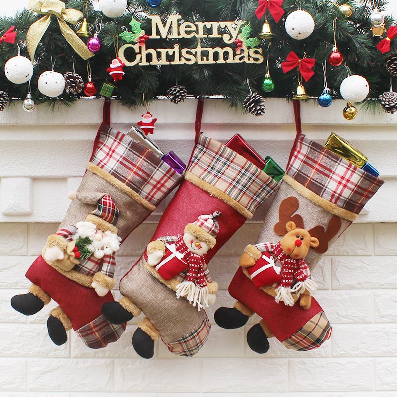 Christmas Stocking Hanging Ornament Santa Snowman Elk Bear