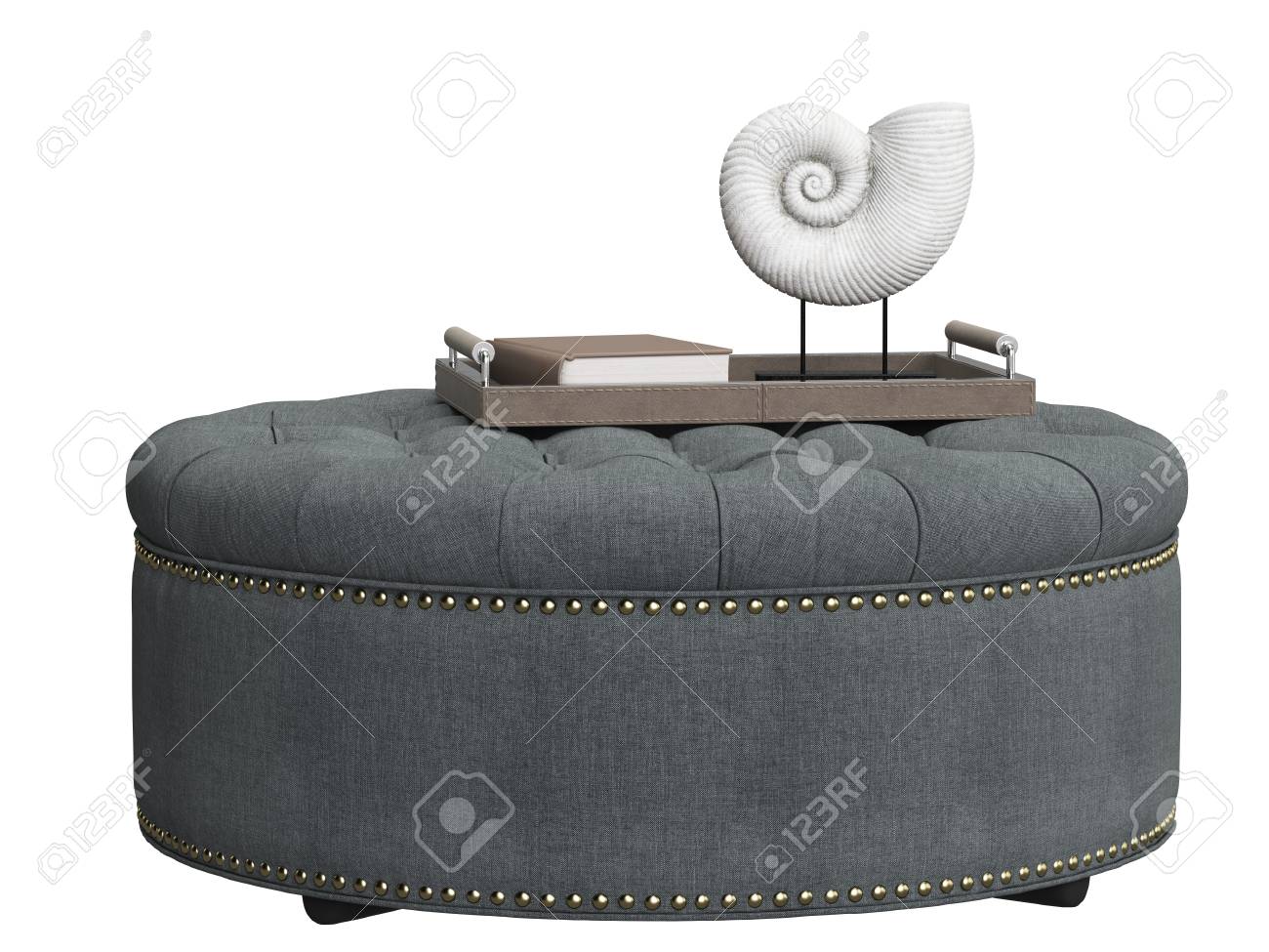 Classic Tufted Ottoman Grey Color With Decor In Tray Seashell