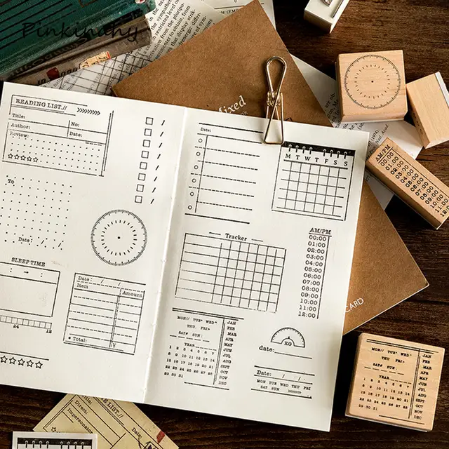 Vintage Daily Planner Grid Memo Check List Decoration Stamp Wooden