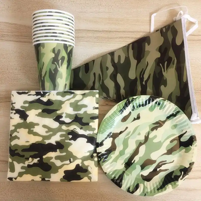 Army Green Camouflage Theme Party Decorations Tableware Paper Cup
