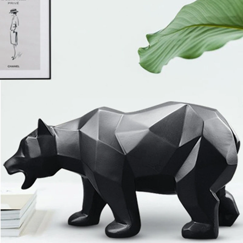 Black Bear Statue Geometric Wildlife Male Bear Decor Resin