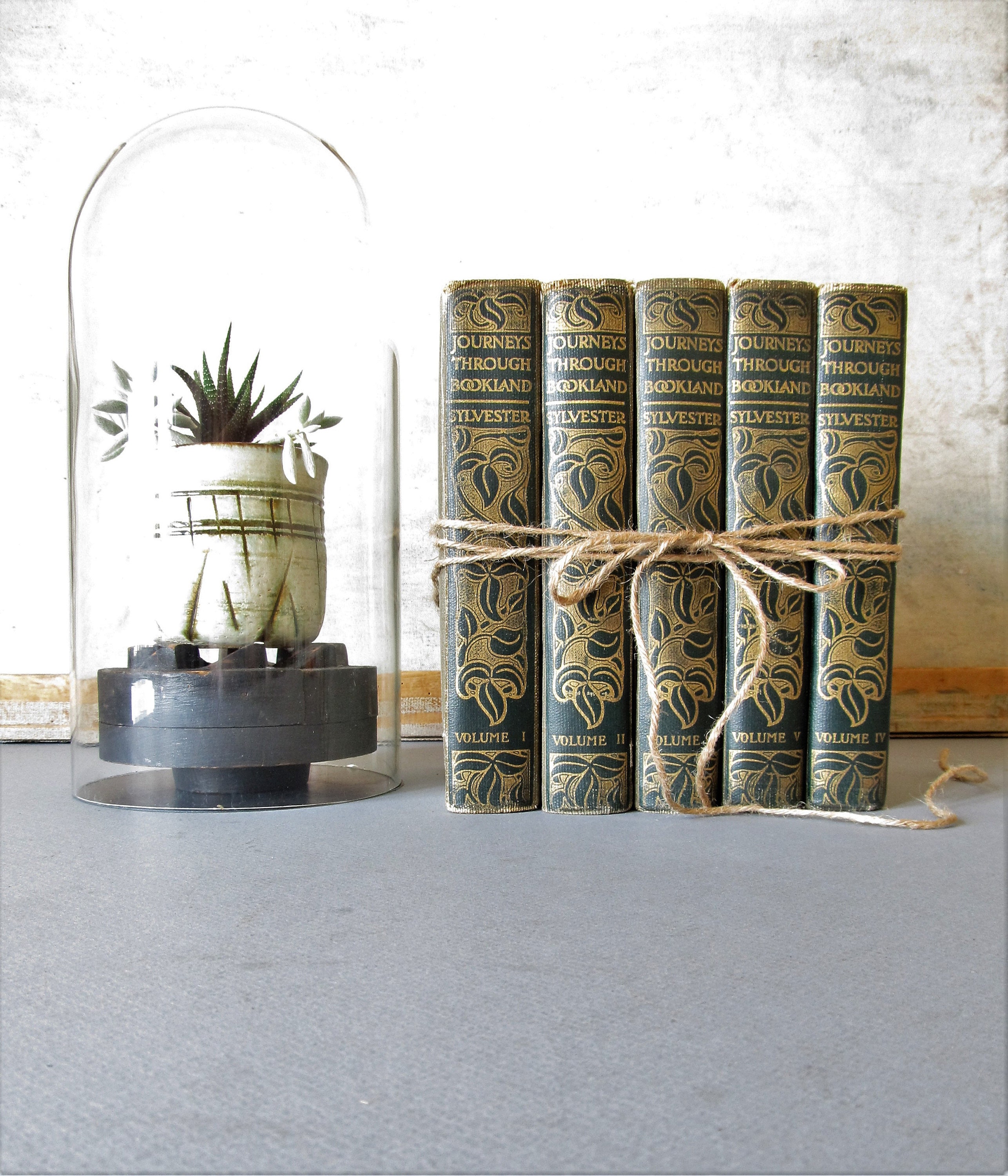 Vintage Book Decor Decorative Green Books Bookshelf Decor Etsy