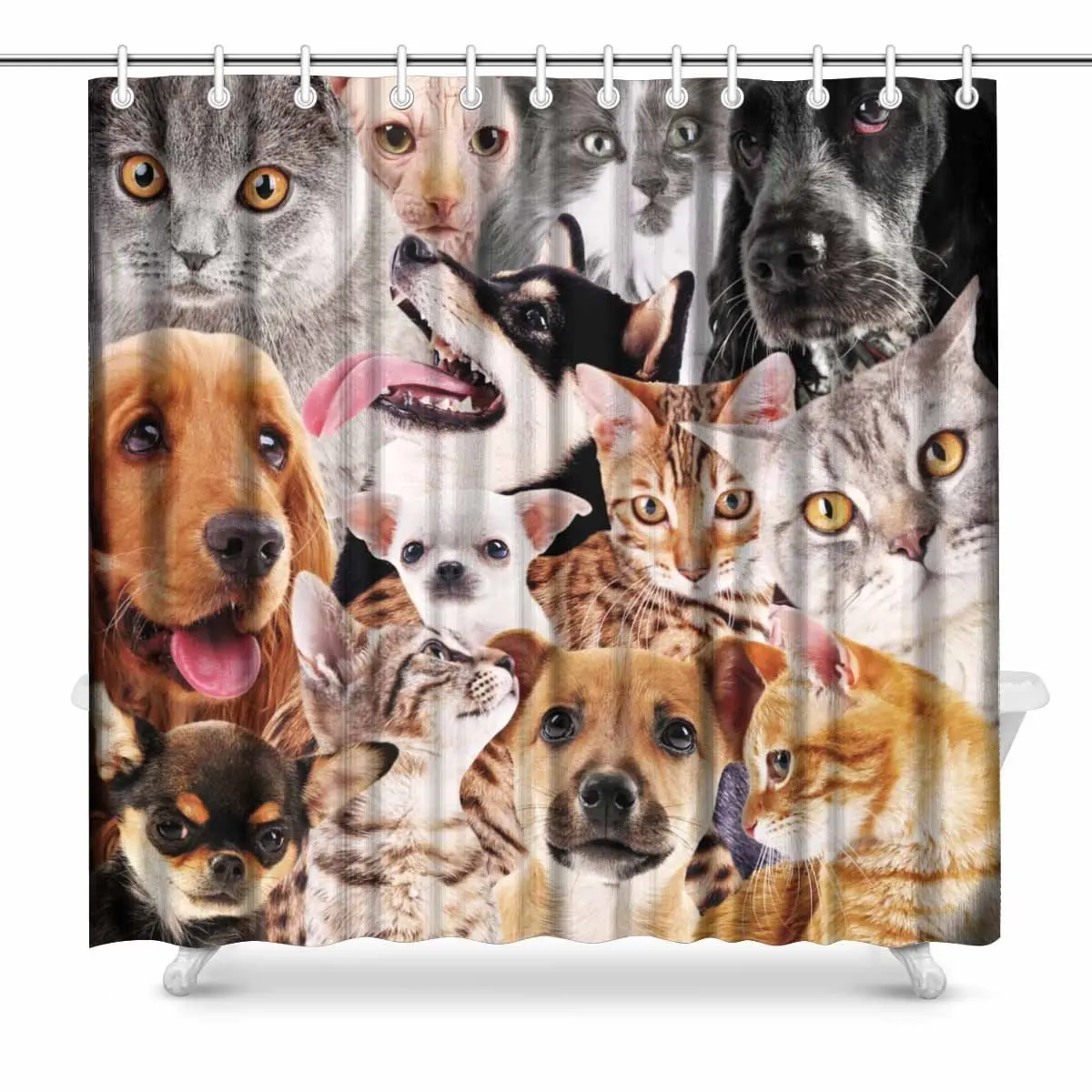 Cute Dog And Cat Bathroom Decor Shower Curtain Set With Hooks 72