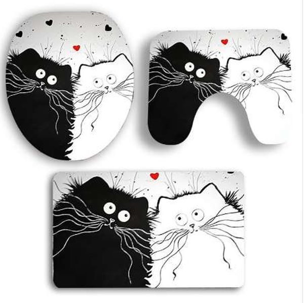 2020 Polyester Love Two Cats Bath Mats Toilet Lid Cover Mat