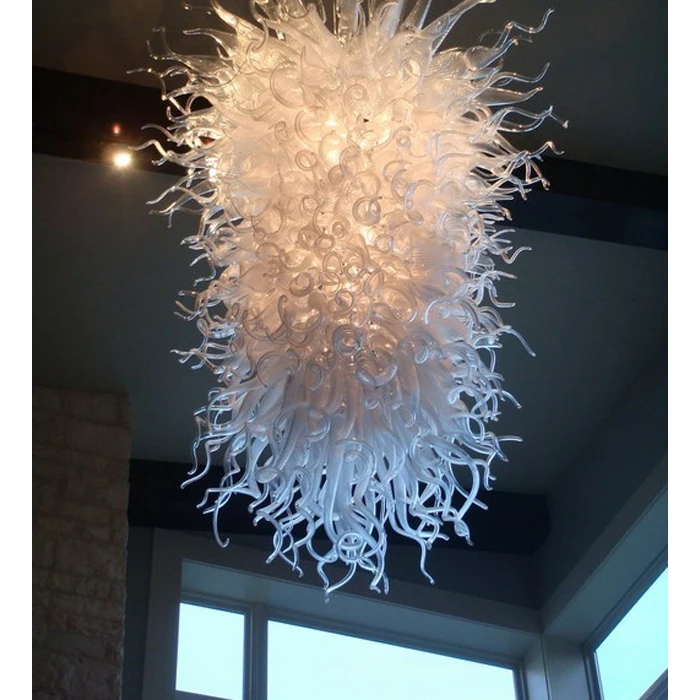 Villa Foyer Decor Big Size Handmade Blown White Murano Glass Led
