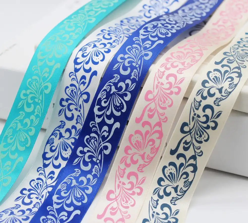 China Style 1 25mm Blue White Chinoiserie Printed Satin