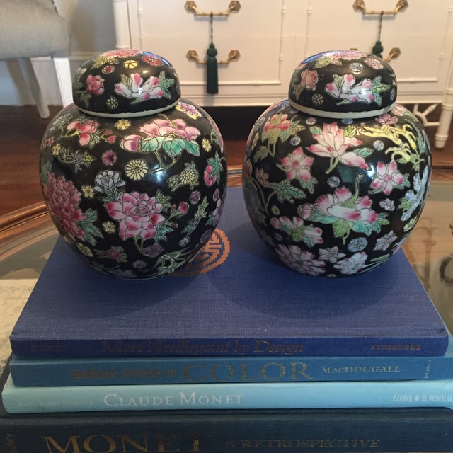 Jarrones Ginger Jar Chinoiserie Decor Black Floral Chintz Vintage