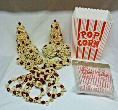 Lot Of Popcorn Decorations Balls Garland Boxes Trees Ebay