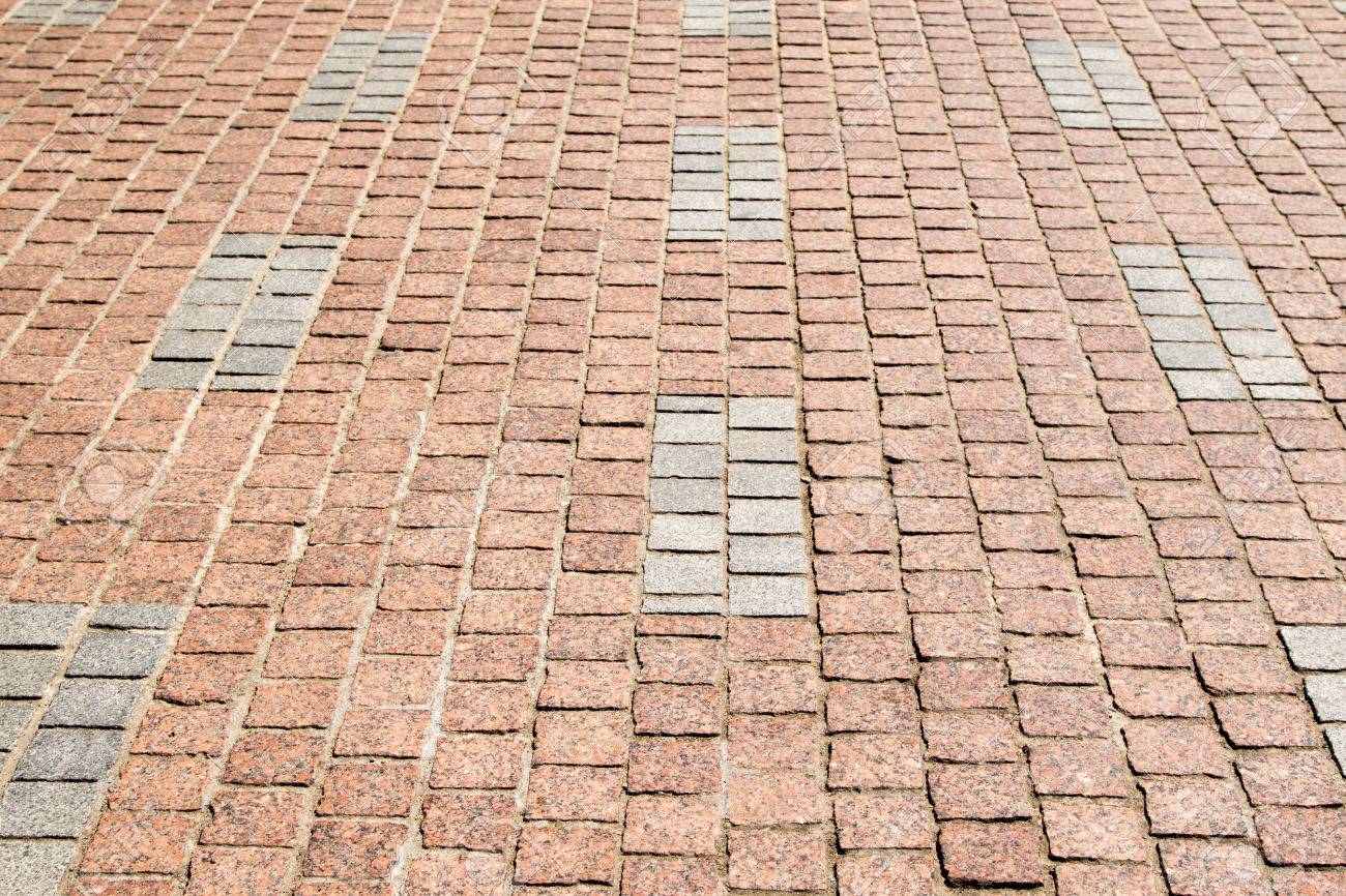 Wide View Of Old Decorative Brick Pavers Herringbone Pattern