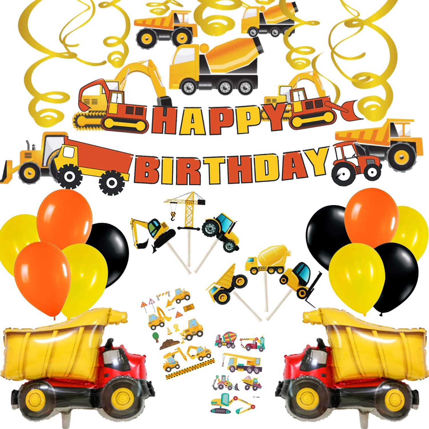 48 Pcs Construction Birthday Party Supplies Favors Tractor Banner