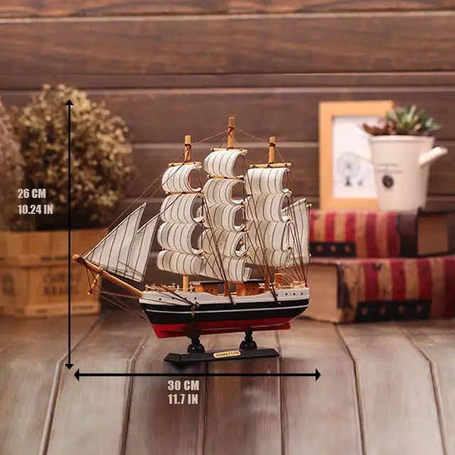 Wooden Ship Model Nautical Decor Home Crafts Figurines Miniatures