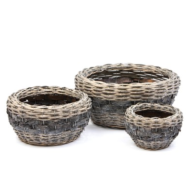 Round Wicker Style Distressed Gray Willow Decorative Baskets Set