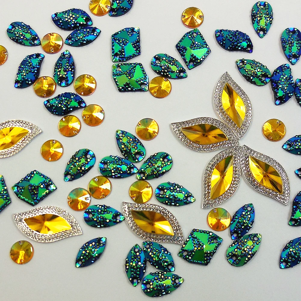 Dark Blue Yellow Mix Shapes Decorative Beads Crystal Sew On