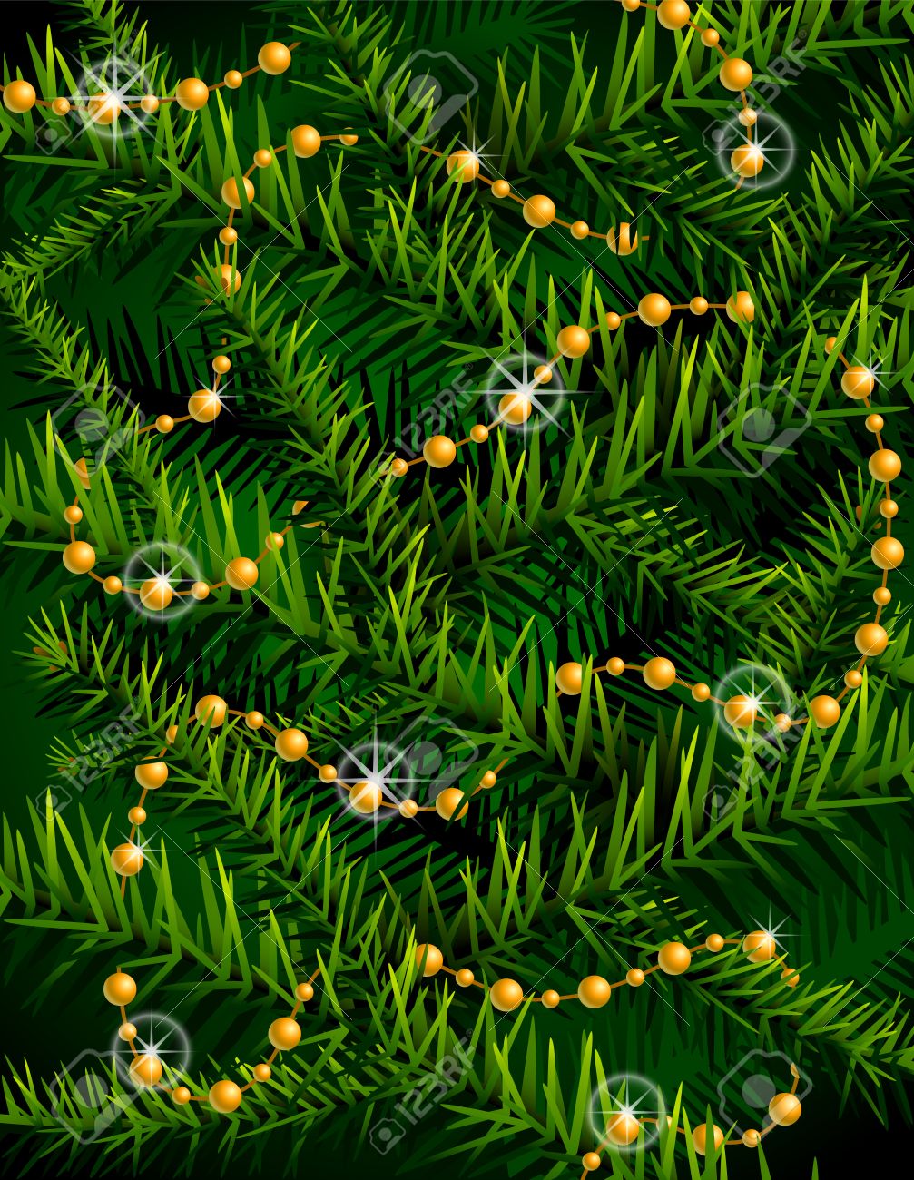 Christmas Tree Branches And Decorative Beads New Year Backdrop