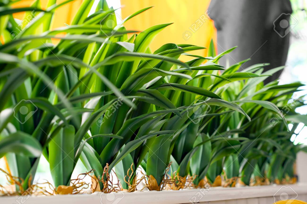 Green Decorative Bushes In A Pot As Part Of The Interior Of The