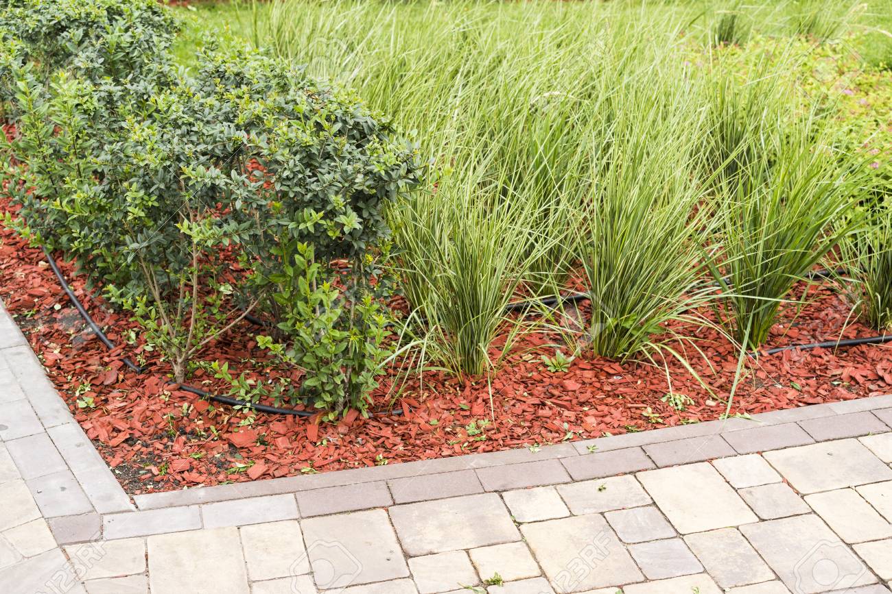 Decorative Red Powder From Tree Bark With Decorative Bushes In