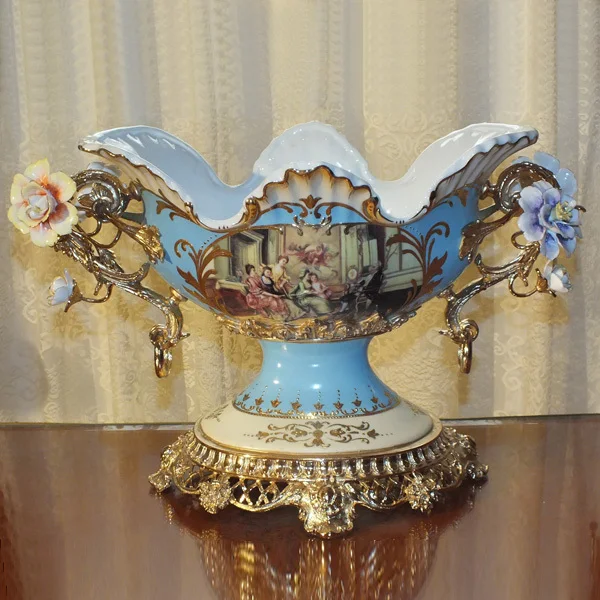 European Porcelain Bible Theme Fruit Bowl Flower Decorative Golden