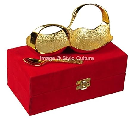 Stylo Culture Indian Decorative Bowls Home Decor Gold Plated Brass