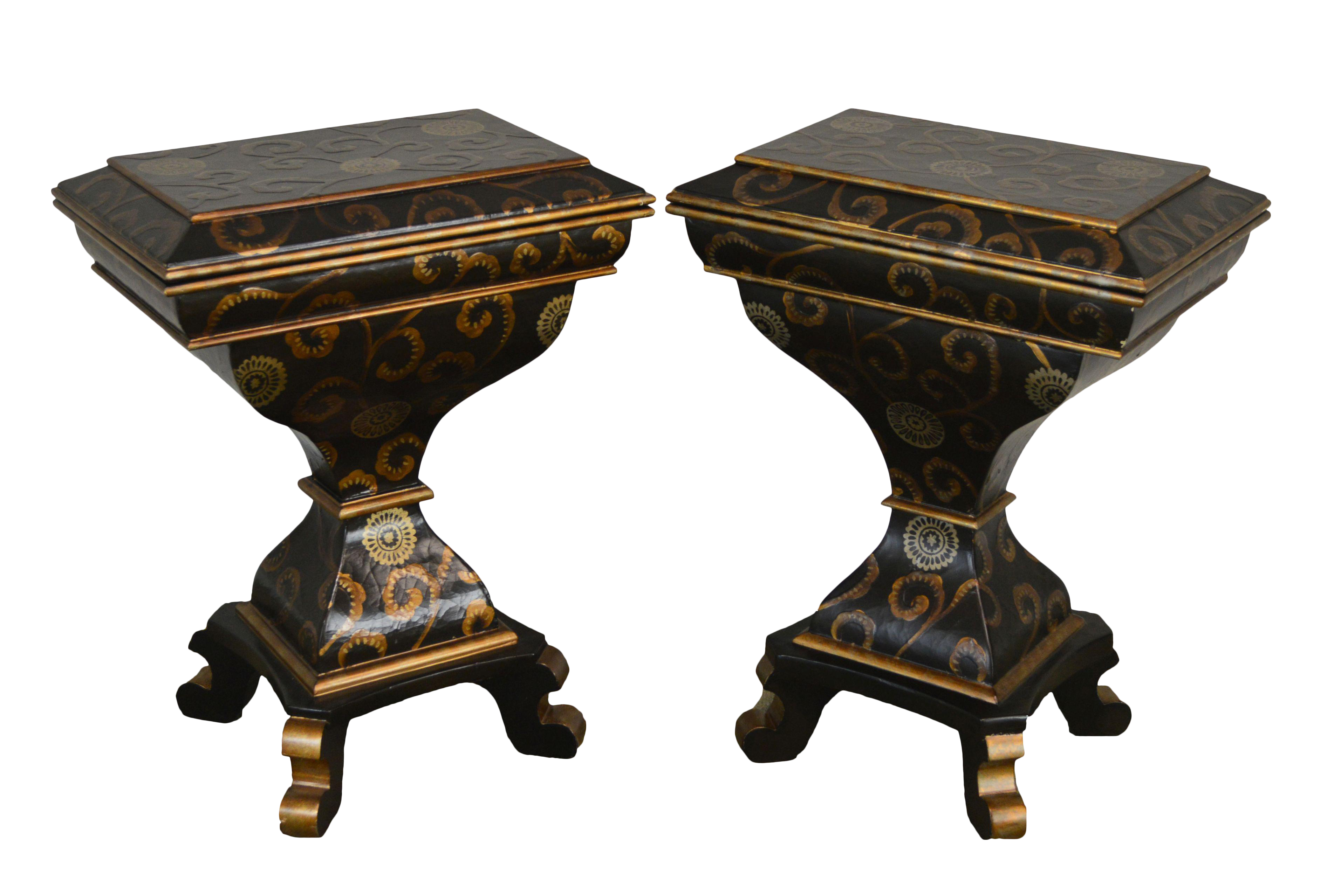 Black And Gold Decorative Pair Flip Top Pedestal Stands Chairish