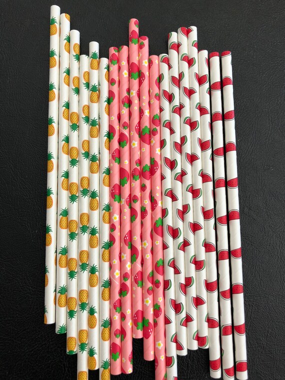 Decorative Straws Fruit Designs Strawberry Pineapple Etsy