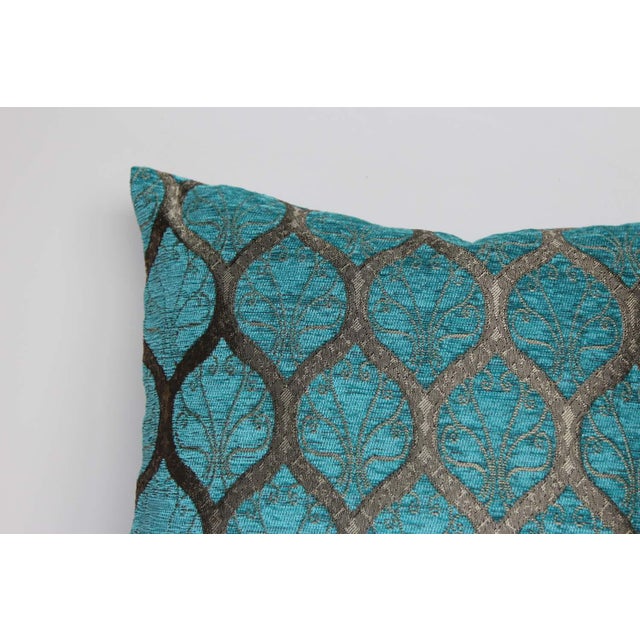 Turkish Ottoman Trellis Chenille Decorative Throw Pillow Turquoise