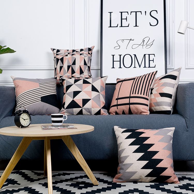 Pink Decorative Throw Pillows Case Nordic Cushion Gray Geometric