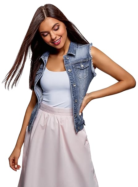 Oodji Ultra Women S Denim Vest With Decorative Pockets Amazon Co
