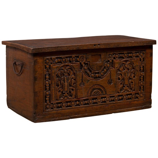 Antique Indonesian Decorative Wooden Box With Carved Flowers And