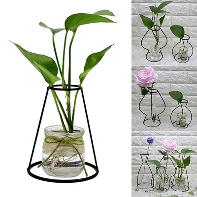 1 Pcs Iron Diy Vase Frame Black Geometric Frame Artifical Flower