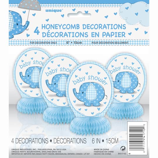 Honeycomb Blue Elephant Baby Shower Decorations 4ct