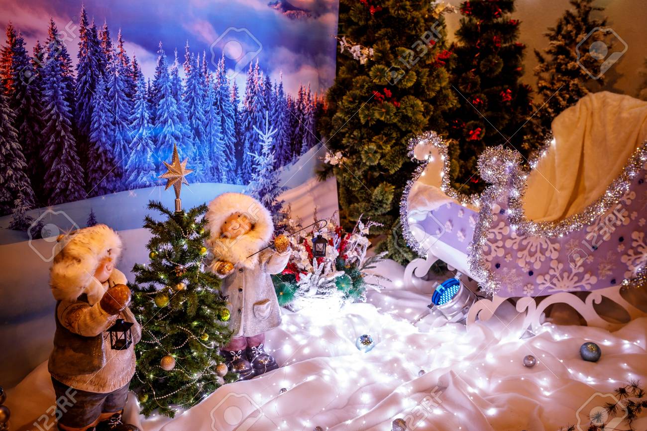 Fairy Christmas Tree And Decorations At The Interior Of Big Store