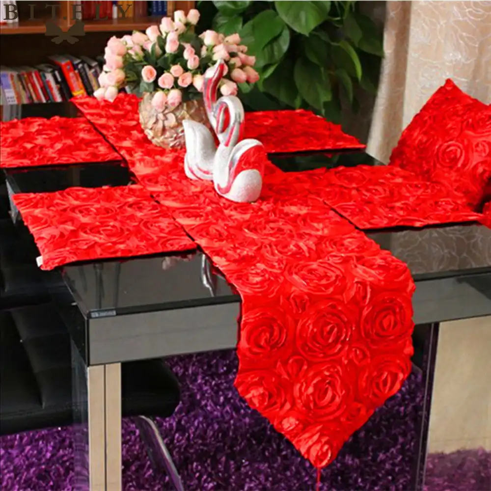 Luxury Modern Satin Rose Embroidery Table Runner Cloth For Wedding