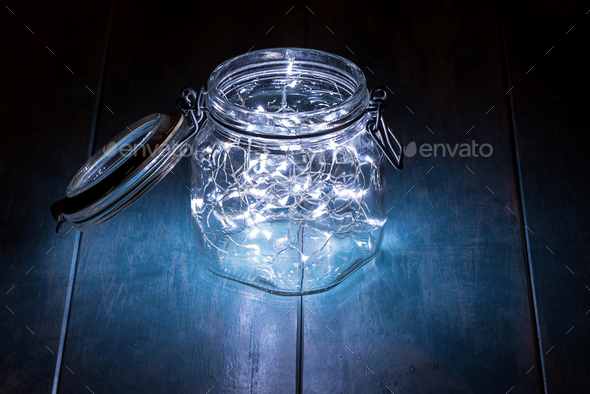 Glass Jar Filled With Decorative Lights Stock Photo By Bisualphoto