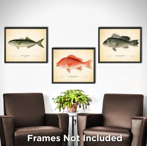 Bass Fishing Decor Set Of 3 Sea Bass Fishing Wall Art Etsy